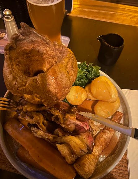 Eventually, we landed at The Porterhouse on Maiden Lane near Convent Garden, where we finally found our roast. It was everything you want from a Sunday lunch, generous, hearty and reasonably priced (especially for London). Despite being a spawling pub that stretches across multiple levels and hidden nooks that almost feel like you’re in the Labrynth of breweries, The Porterhouse somehow keeps that intimate atmosphere. The perfect mix of warmth and liveliness, especially with the football playing on the many screens tucked around. - We’ll definitely be back!