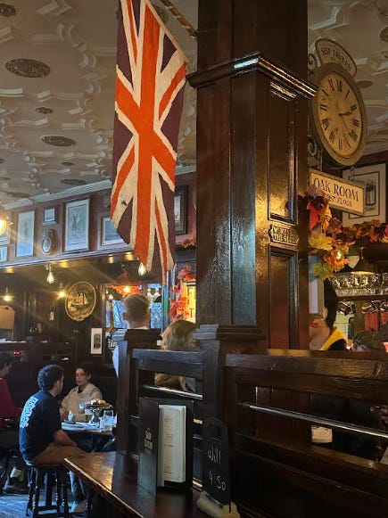 Along the way, we stopped at The Ship Tavern on Gate Street, a classic 16th-century pub that was buzzing with chatter and charm. We tucked ourselves away with a pint and a crossword, the kind of simple moment that felt like I was in a cozy novel. (Upstairs, they serve their own roasts, though it books up fast so one to try for next time!)